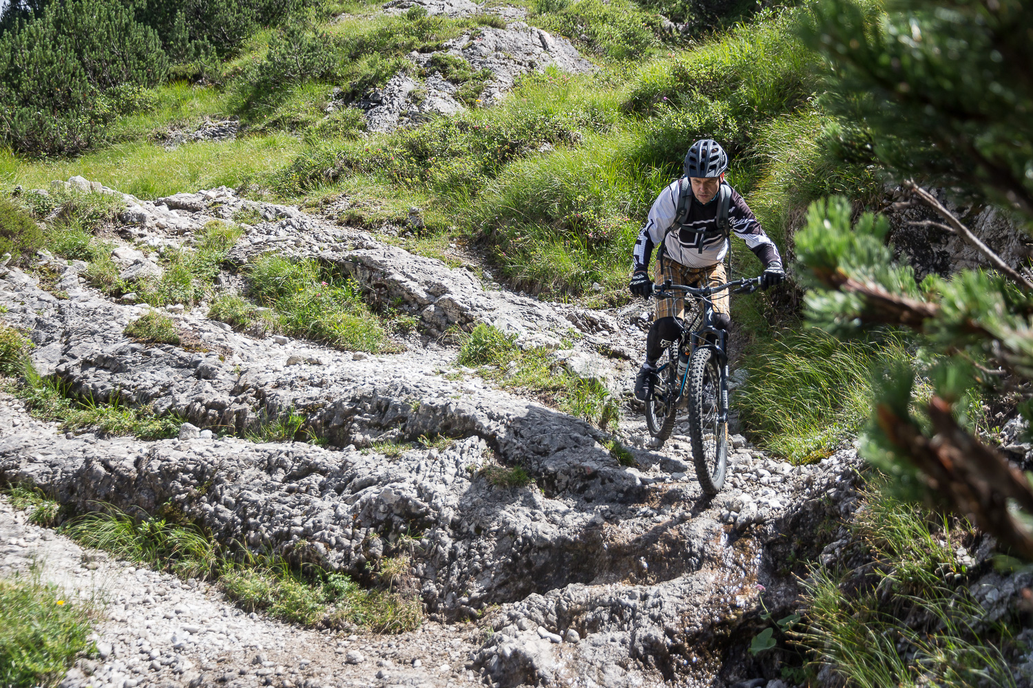 Und die hat es heute in sich. Die oberen 300 Höhenmeter wechseln sich interessante Felspassagen und schottrige Kehren ab.