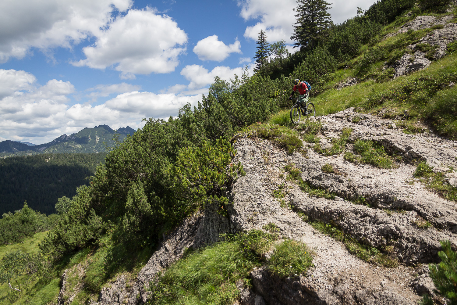 Steile Schotterrinnen, große hohe Absätze, Geröll und Schutt ohne Ende. Eigentlich eine klassische Trailbeschreibung für den Gardasee. Wir weilen allerdings momentan nicht im sonnigen Süden, sondern im mindestens genauso sonnigen Bayern. Wie so oft dieses Jahr steht eine Tour von freeride.today auf dem Plan. Einige Trailperlen scheinen sich dabei rund um Kreuth zu befinden, Grund genug für einen Kurztrip in die bayrischen Alpen.